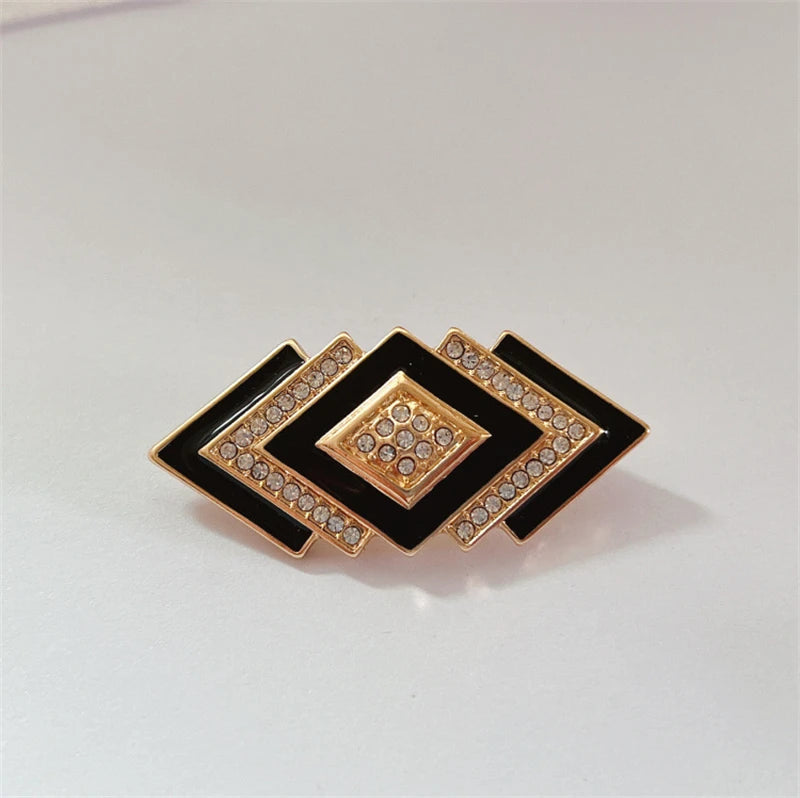 Embrace a vintage look with this art deco inspired brooch. A fun accessory for any look, this brooch would be stunning on a thrifted blazer lapel, or add some sparkle to your handbag, blouse, dress, or anywhere else a pin can go!