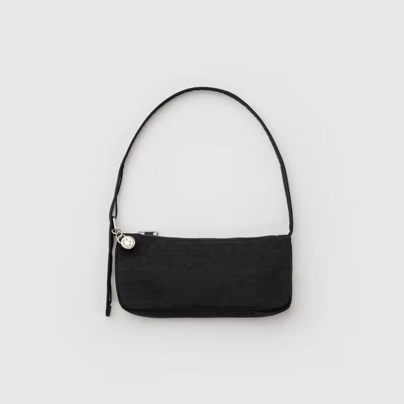A sleek, compact bag featuring built-in card slots for organization, metal charm, and adjustable strap.