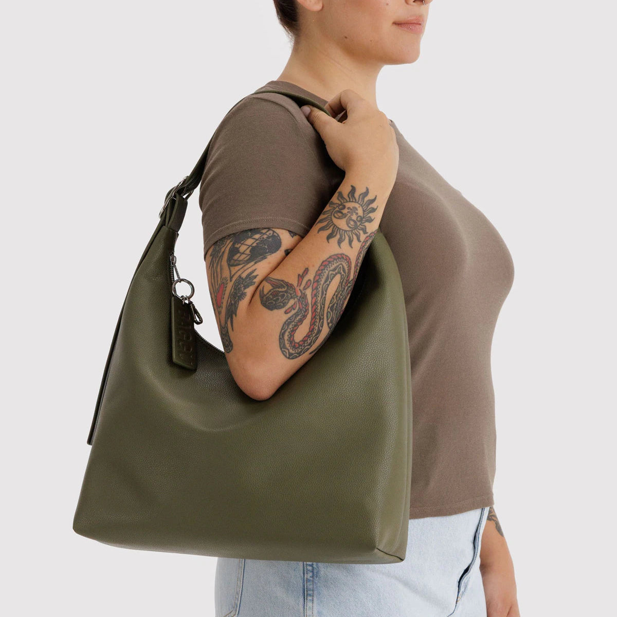 The most premium expression of Baggu's fabulous shoulder bag. Crafted with simple, elegant lines and recycled leather that’s been fine-tuned for quality, style, and impact. The material upholds the durability and responsible sourcing standards Baggu is known for, alongside truly elevated details, like a signature grain, custom hardware, and recycled trims.