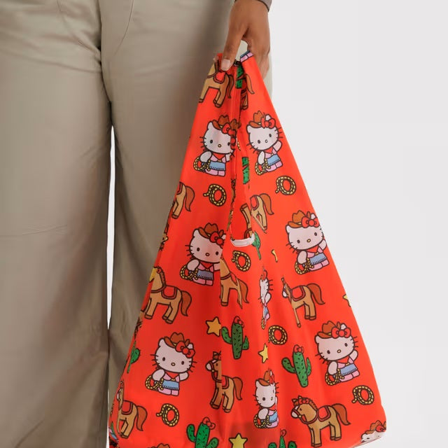 These fun reusable bags are not just for the grocery store, they go everywhere and haul (practically) anything. Carry 2-3 plastic grocery bags worth of stuff comfortably in hand or over your shoulder - which means less trips from the car!