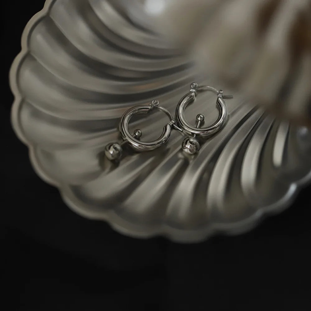 A little punk rock, a little rock and roll, and very cool. These silver hoop earrings feature a barbell detail that adds instant edge to your look