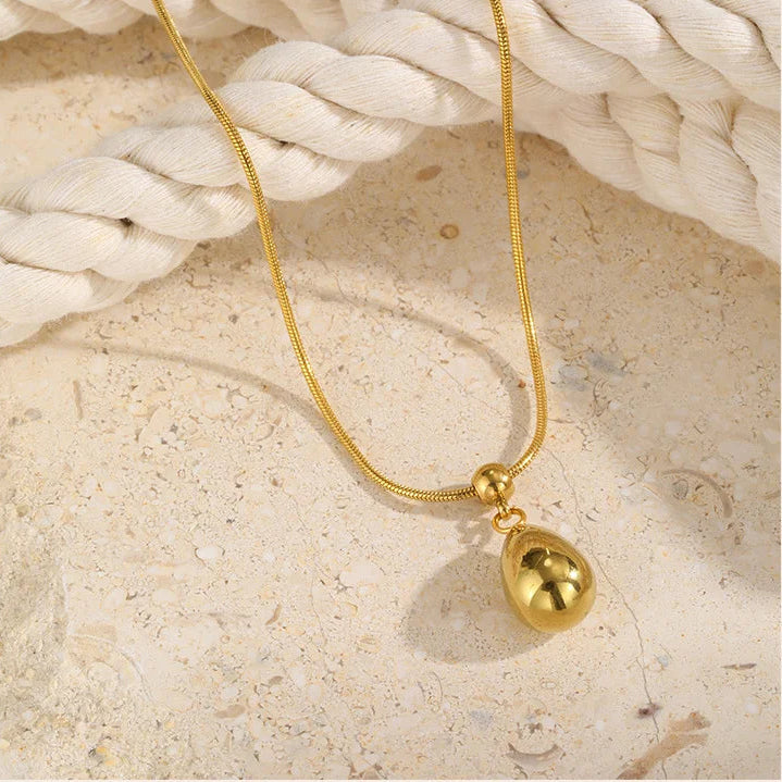 Perfect for layering with delicate or more substantial chains, this necklace features a large gold teardrop pendant suspended from a sleek chain.