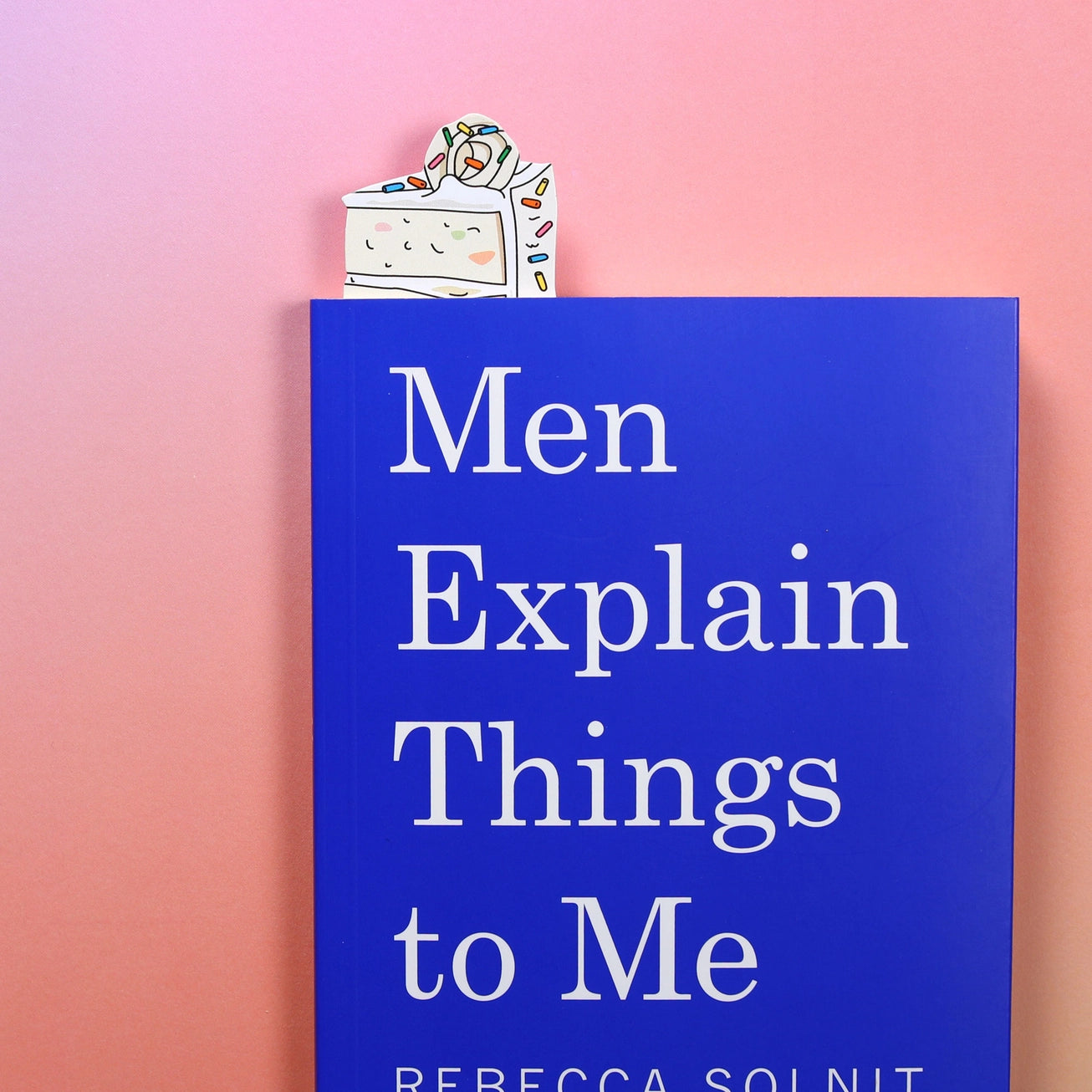 It's a slice of cake in a book! Bookmarks are underrated... until you have a tasty looking sprinkle cake slice sticking out of your novel.