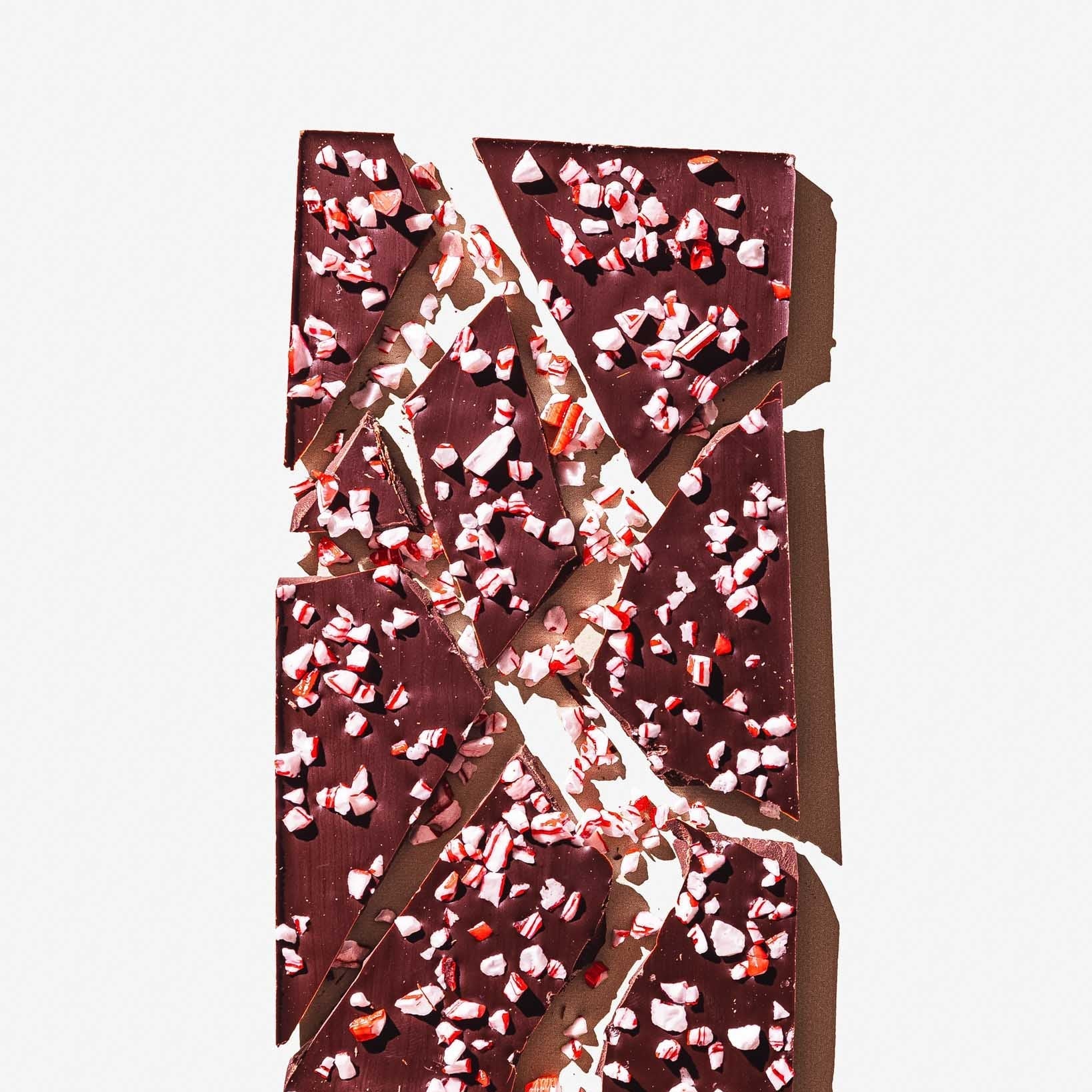 This limited edition Peppermint Dark Chocolate bar is filled with rich dark chocolate and studded with crunchy peppermint candy cane pieces, for one beautiful and delicious chocolate bar! Decked out in a holiday Christmas pattern with polar bears and crystals collage, this delightful holiday treat is decadent and beautiful all at the same time.