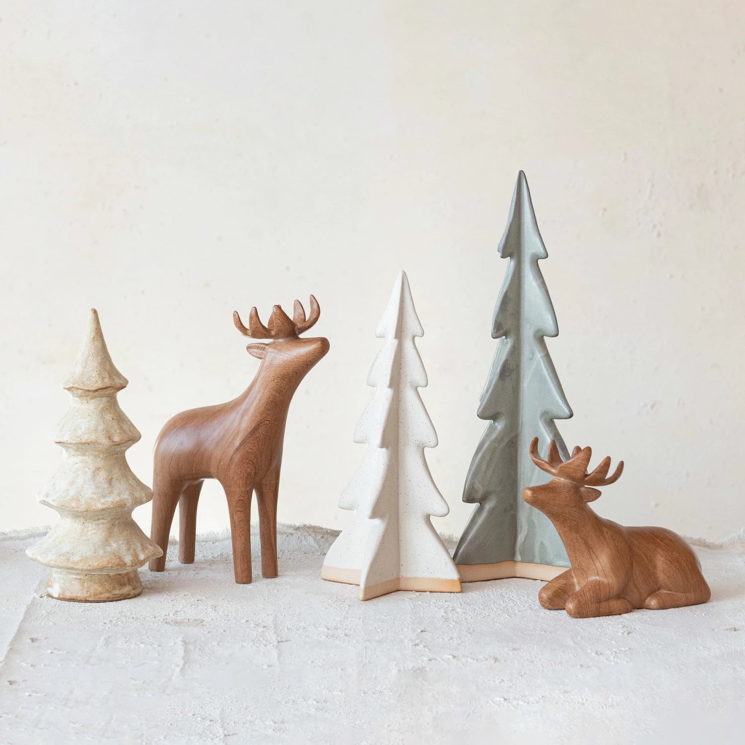 Layer height and form into your holiday decor with these glazed stoneware trees. The modern shape is complimented by a monochromatic finish making these trees an easy addition to any decor style.