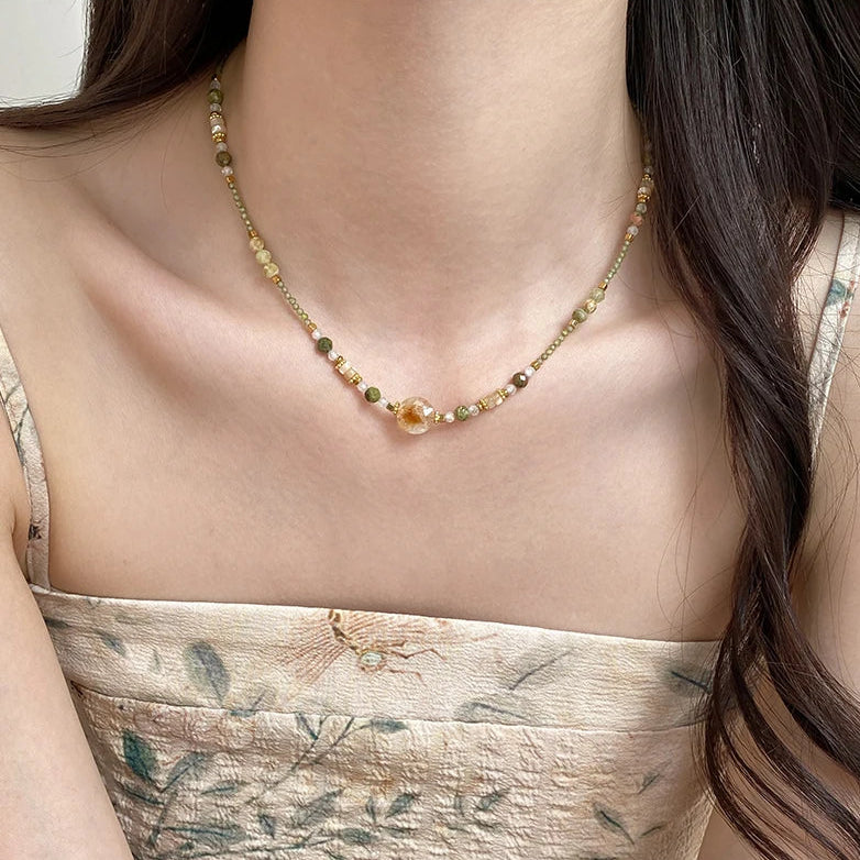 Add a natural element to your look with this natural stone necklace. Featuring a mix of natural stone beads this necklace is a great layering piece for everyday looks, a neutral option for the office, or a fun way to add a little texture and interest to your look.