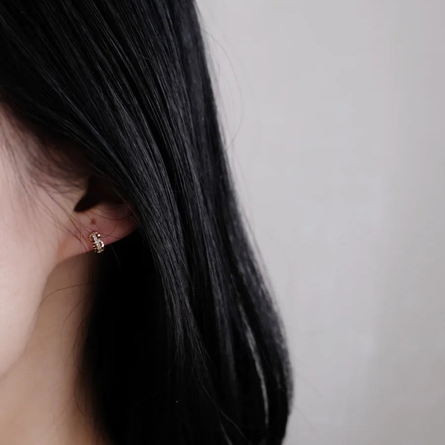 Dazzle this holiday season! Dainty in shape and form, these scallop edge huggie style earrings are offset with sparkly crystal details. Great as a minimalist style alongside other statement pieces or for a second piercing, these earrings offer a vintage-inspired look.