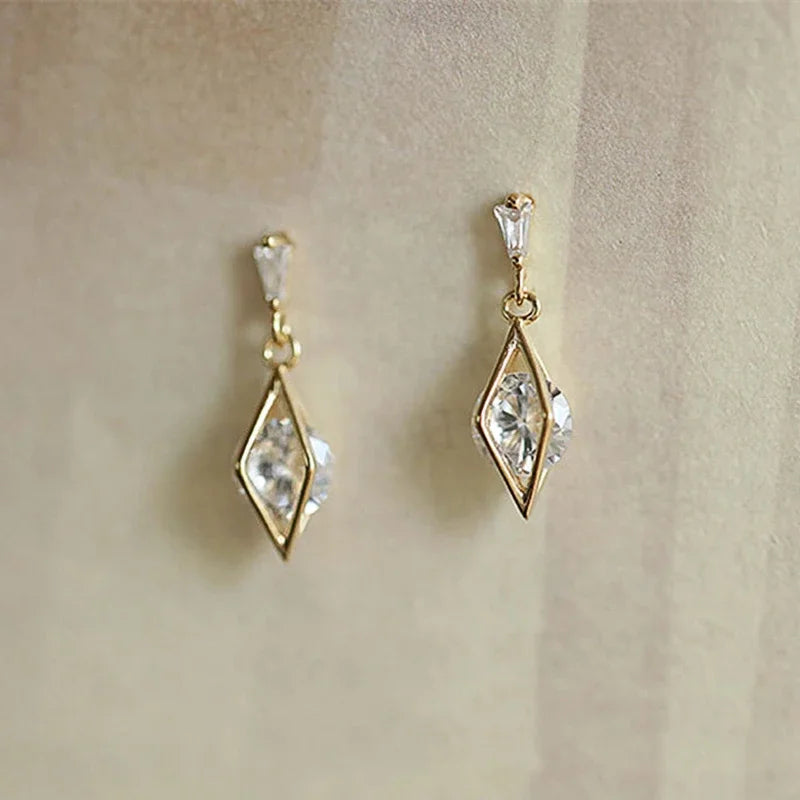 Dazzle this holiday season! These contemporary stud earrings feature a gold diamond-shaped frame that encases a brilliant round cubic zirconia stone). A mix of modern and antique inspired, these gorgeous earrings truly sparkle.