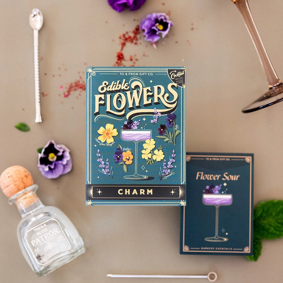 Seed mix inside includes Lavender, Lemon Gem Marigold, and Pansy. Contains a cocktail recipe trading card inside!