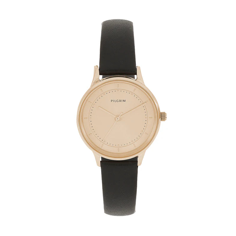 Embrace a modern, minimalist look with the Explorer Watch from Pilgrim. The round gold-plated case and classic black leather band embody clean Scandinavian design, bringing elegance and timelessness together in one refined piece. Minimalist markers and a polished finish make it a versatile accessory — perfect for everyday wear.