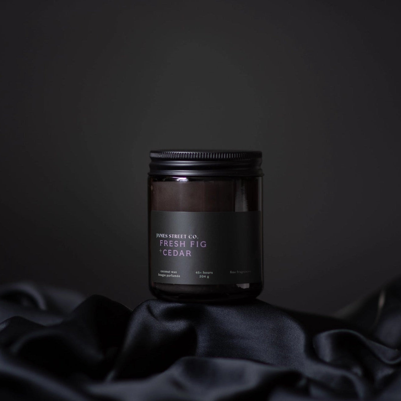 The Fresh Fig + Cedar candle from James Street Co opens with juicy, ripe fig and a hint of blackcurrant. Soft florals of hyacinth, jasmine, and cyclamen follow, adding a gentle complexity. Underneath, cedarwood, pine, musk, amber, and a touch of patchouli create a warm, earthy base that feels balanced and understated.