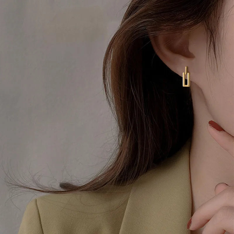 Clean, crisp lines form these minimalist geometric drop earrings for a modern look that's perfect for the office. A great option that feels more formal than they are, these earrings make a statement while being understated and lightweight.