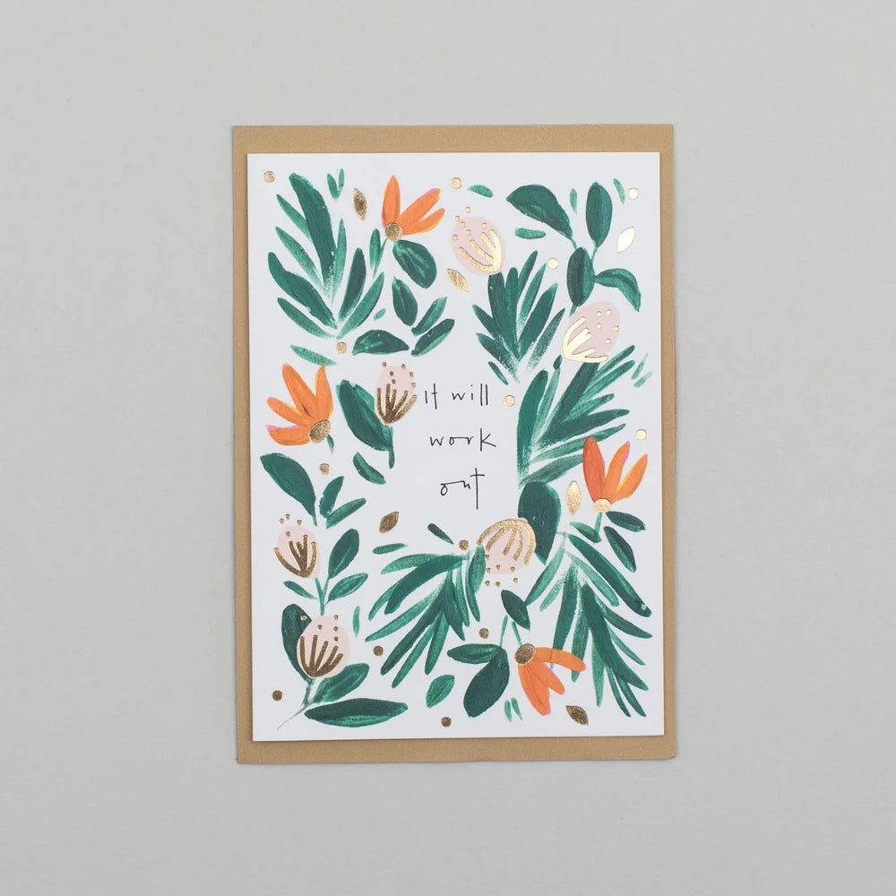 Delicately foiled greeting card with botanical illustration. Comes with a white envelope. Each item is lovingly finished, packed and sent from Katie's studio by the sea.