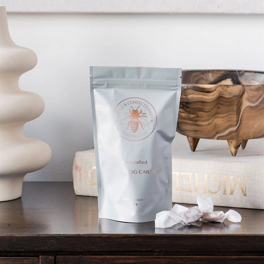 Small batch, hand cut, hand wrapped caramels. Infused with Earl Grey tea, bergamot and vanilla. This soft chewy caramel won't stick to your teeth and will simply melt into the palate. Individually wrapped in parchment barrier paper.