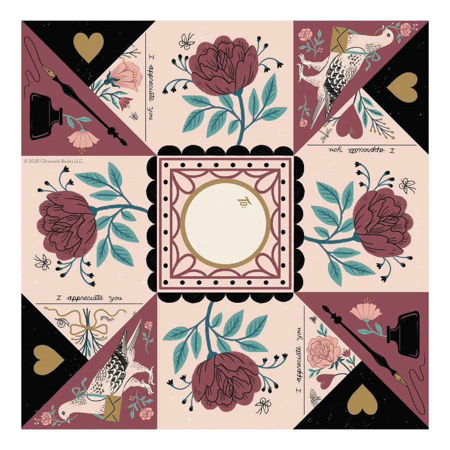 This set features twelve cards (four each of three different designs) by illustrator Lisa Perrin, along with a set of beautifully coordinated illustrated charms. Each card tucks together cleverly to create a small purse or pocket to enclose a charm or any small treasure—like a pressed flower or meaningful sticker—as a token of the sender's affection.
