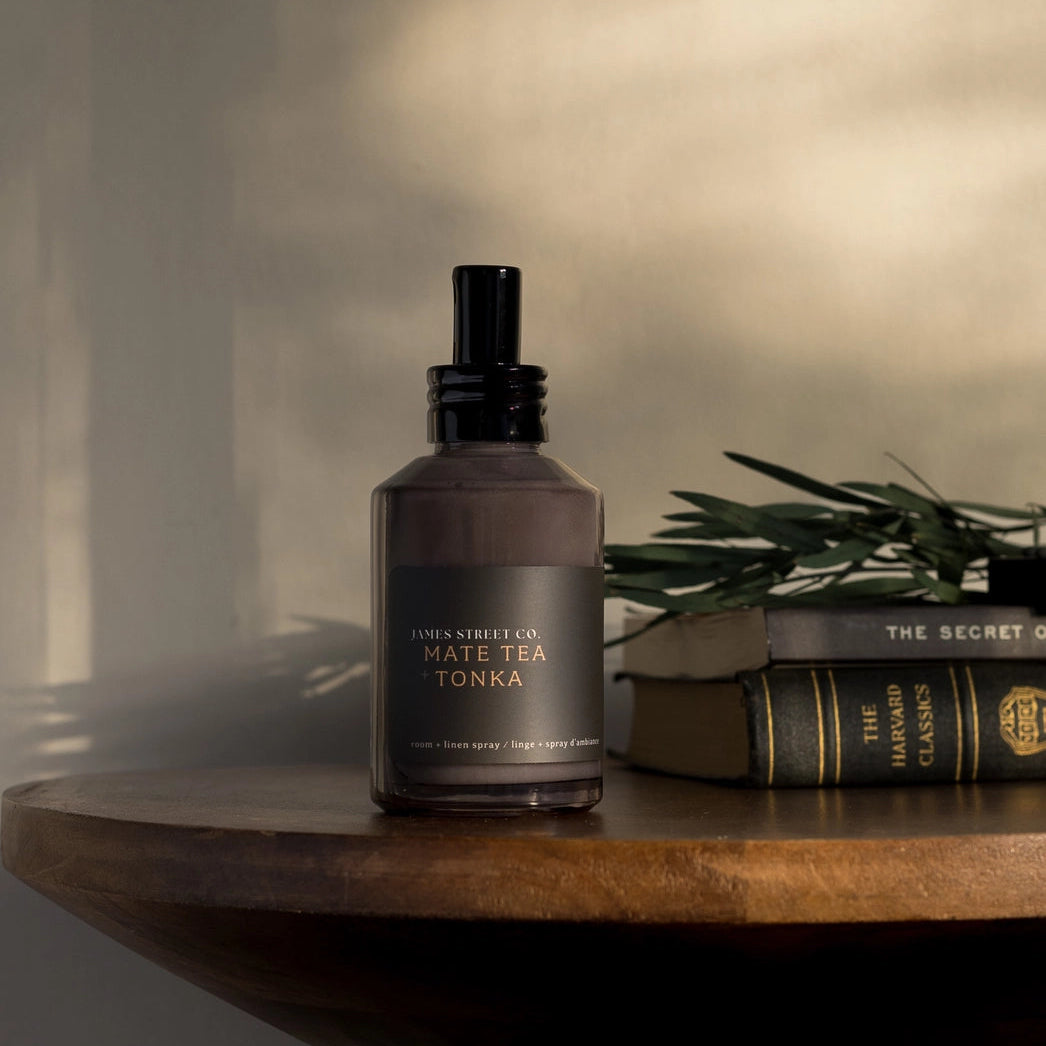 The Mate Tea + Tonka linen and room spray from James Street Co is earthy, quietly captivating, and softly smoky. This scent layers delicate wild violets and smooth black tonka over a grounding base of mate tea, creating an atmosphere that feels both comforting and intriguing. Subtle smoke rounds it out, leaving a warm, earthy finish. She’s bold, slightly sweet and confidently herself.