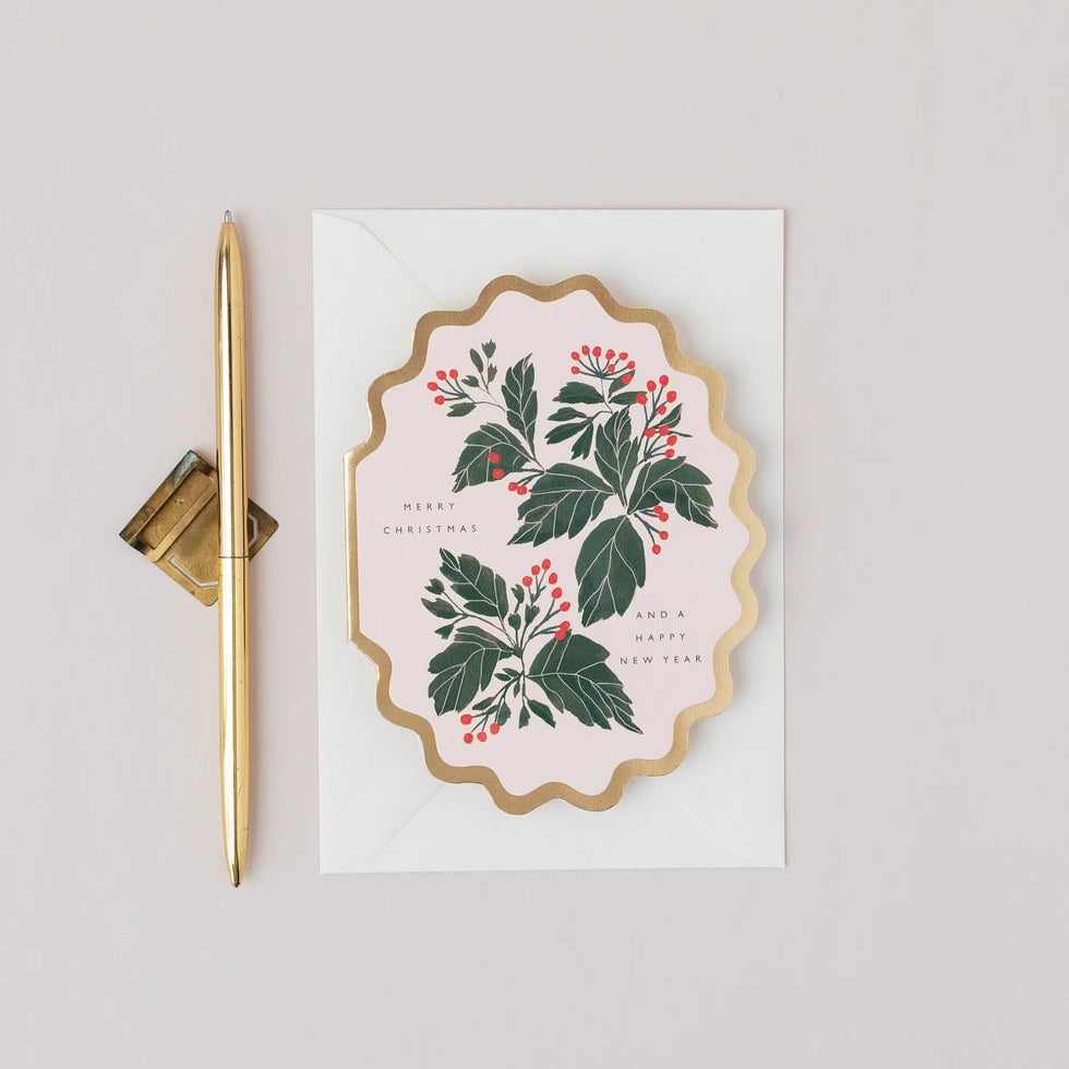Die cut, delicately foiled greeting card with botanical illustration. Comes with a white envelope. Each item is lovingly finished, packed and sent from Katie's studio by the sea.