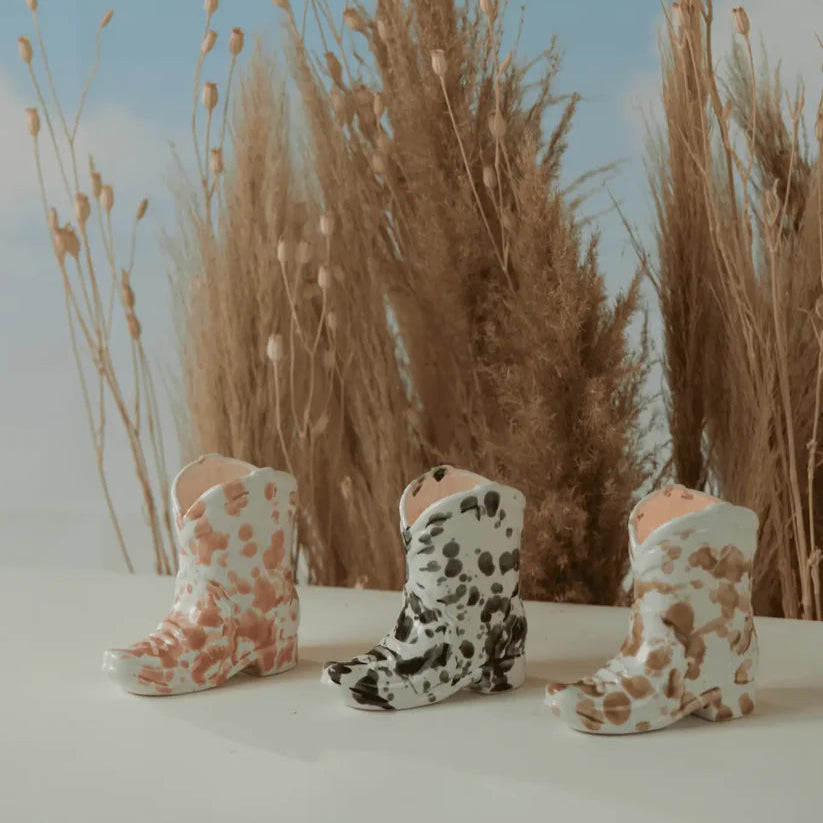 The Nashville Cowboy Boot - Palo Santo 6oz candle comes with a speckled glaze and western inspired fragrance. Each boot candle features embossed detail and a glossy finished ceramic vessel. Repurpose as a pencil cup or floral vase to add a little Tennessee charm to your home.