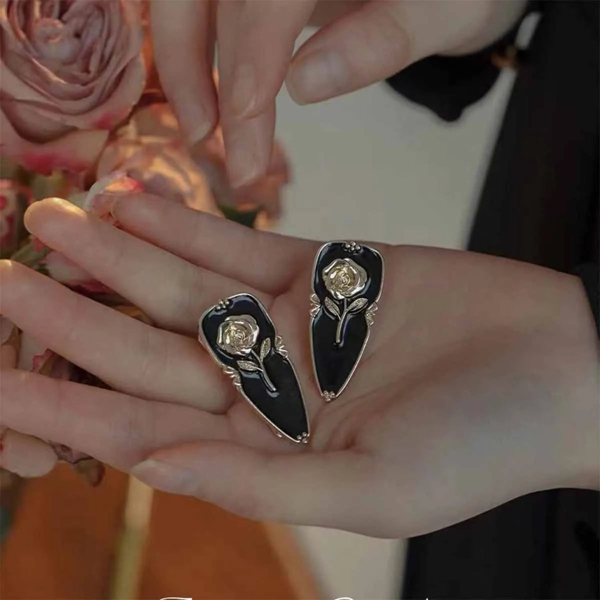 Add a romantic element to your look this fall with these black enamel hairclips with gold rose detail. A fun accessory with endless styling options we love the idea of pairing these ultra feminine clips with a casual, androgynous look.
