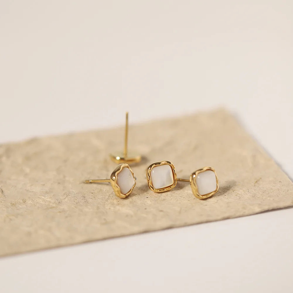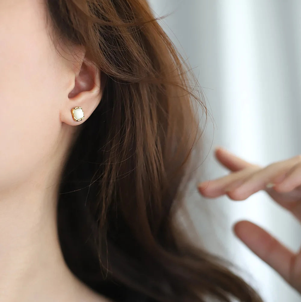 Dazzle this holiday season! These contemporary square-shaped studs feature an inlaid detail of cream natural shell. With an almost milky appearance these dreamy studs work with a variety of looks for a range of events. A great option to transition from day to night.