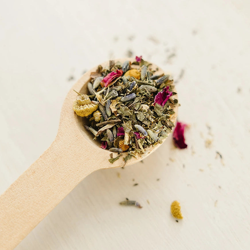 A calming herbal tea to help you unwind and ease into rest. Chamomile, lavender, lemon balm, and spearmint create a soft, floral blend that soothes the nervous system. Lightly sweet with a delicate finish, this tea is your gentle evening ritual. Breathe deeply, sip slowly, and let the day go.