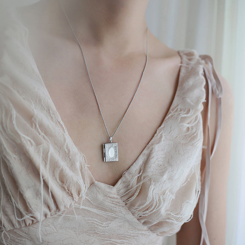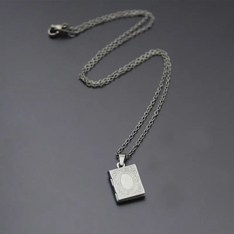 This gorgeous silver book necklace is both stunning, and functional! Perfect for the book worm in your life, or maybe just for yourself! Put a cute photo of your fav person, pet, or place and keep them with you all day long! Does not include photos.
