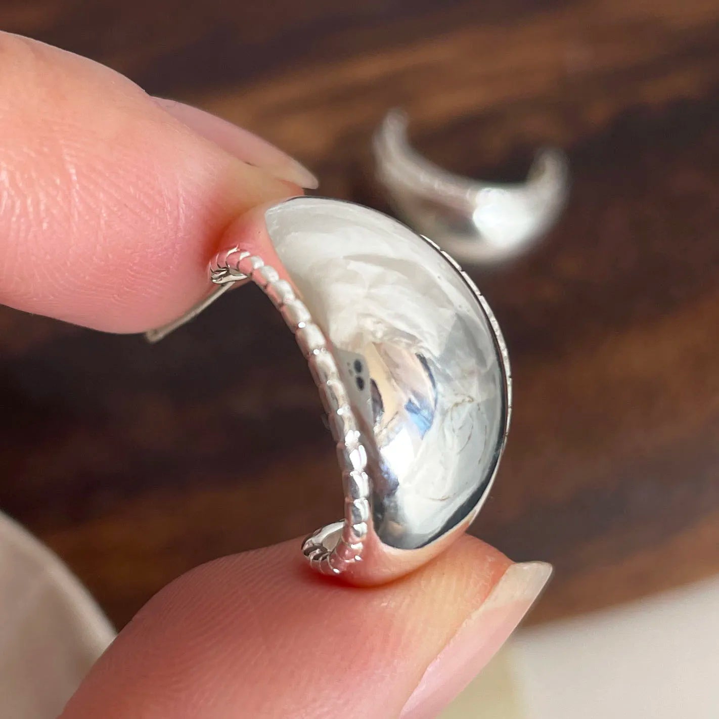 Dazzle everyday in these light-catching Sterling Silver hoops. With a beaded edge detail and wide shape, these earrings were made for life on the ranch, canning raspberry jam, but they won't complain about your 3pm zoom call.