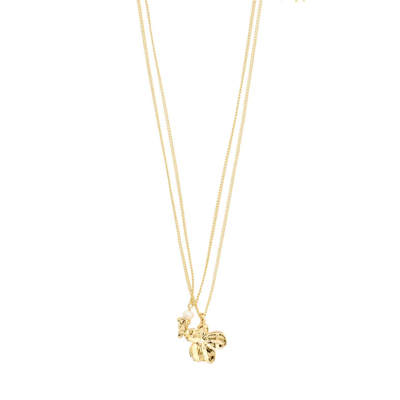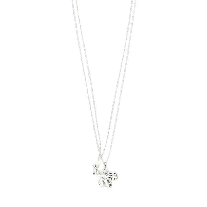 Rock the layered look with Pilgrims' 2-in-1 Zhuri necklace set, where you get both floral vibes and pearl glam. The ultimate duo to spice up your outfit, whether you mix them in a layered style or rock them solo. With the silver or gold-plated pendant and chain combination you have your go-to for effortless romantic style.